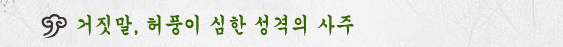 °ÅÁþ¸», ÇãdzÀÌ ½ÉÇÑ ¼º°ÝÀÇ »çÁÖ´Â ¸ÕÀú »çÁÖÀÇ »ì(ß°)À» ÀÌÇØÇØ¾ß Á¤È®ÇÑ ÀÚ½ÅÀÇ ¿î¸íÀÇ Æ¯Â¡À» Ç®ÀÌÇÒ¼ö ÀÖ½À´Ï´Ù.